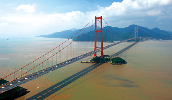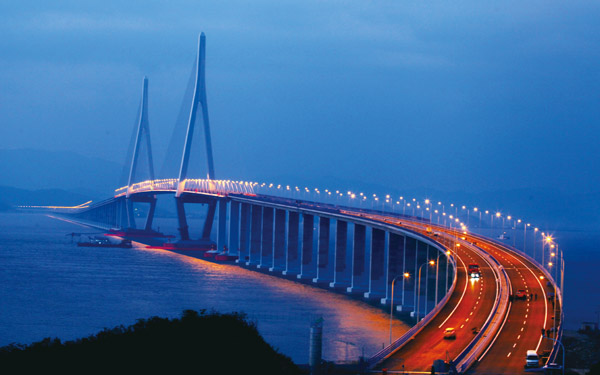 工程全長46.9km,其中象山港大橋長6.7km,其通航孔橋采用主跨688m雙塔雙索面鋼箱梁斜拉橋。該橋...