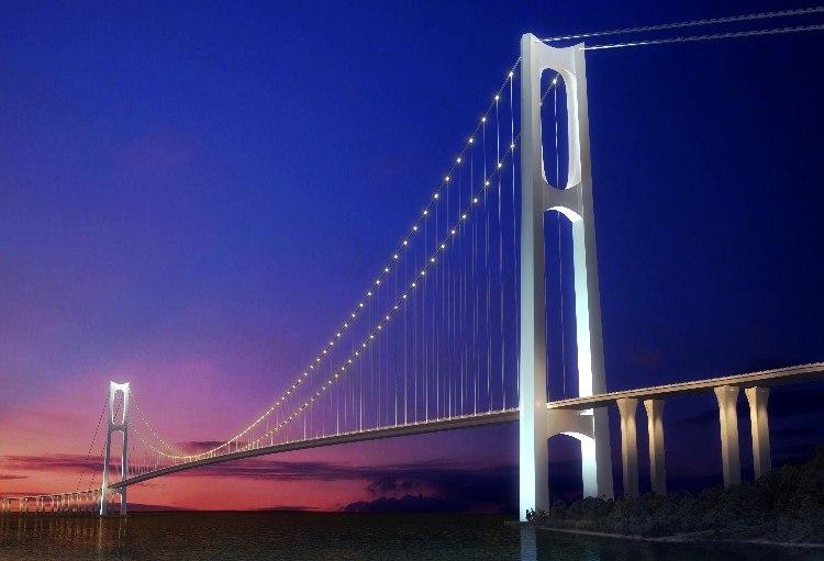 工程全長32.4km,其主跨跨徑1088m,建成時(shí)為世界最大跨度的斜拉橋。主塔高達(dá)300多米,兩個(gè)主塔基...